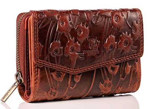 MATADOR Portefeuille Femme Cuir Véritable Grand Format | Porte Feuille Femme avec Grande Porte Monnaie Zippé et Boîte Cadeau | Porte Chequier Femme avec Protection RFID certifiée TÜV | Fleurs Marron