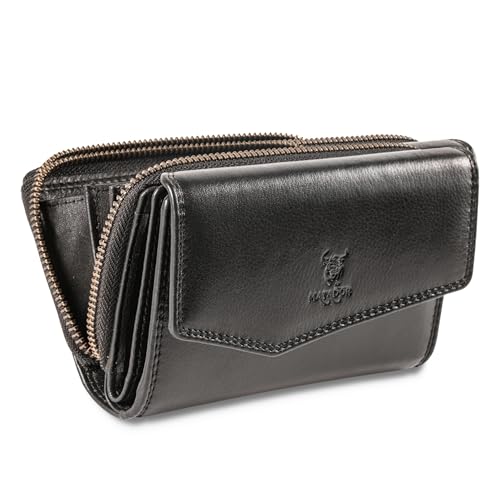 MATADOR Portefeuille Femme Cuir Véritable Grand Format | Porte Feuille Femme avec Grande Porte Monnaie Zippé et Boîte Cadeau | Porte Chequier Femme avec Protection RFID certifiée TÜV | Nappa Noir
