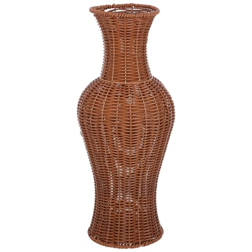 OSOLADY Vase Décoratif en Rotin Synthétique Tissé Grand Format pour Fleurs Séchées, Usage Intérieur Salon Bureau, Design Rustique Simple sur Pied