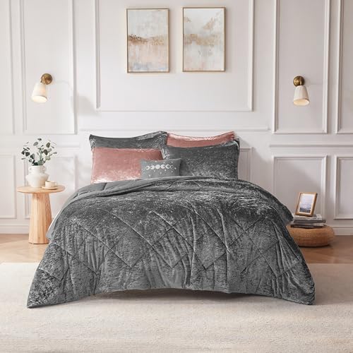 Intelligent Design Ensemble de Housse de Couette en Velours pour Grand lit, 4 pièces, Housse de Couette matelassée en Diamant de Luxe avec Oreiller décoratif et 2 taies d'oreiller, Gris, lit