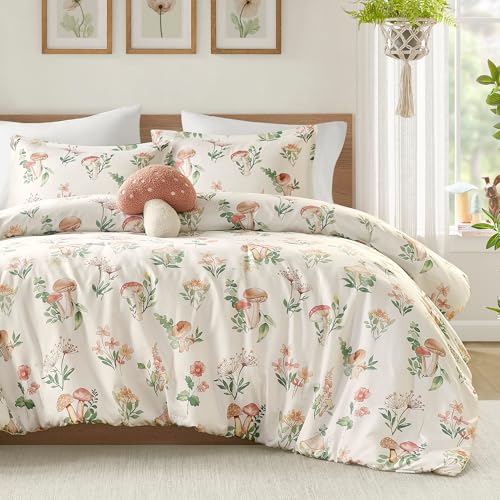 Intelligent Design Gwen Parure de lit 4 pièces en Microfibre légère pour Toutes Les Saisons, Oreiller décoratif et Couvre-Oreiller, Motif Floral fantaisiste et Champignon, lit Double/Grand lit, Vert