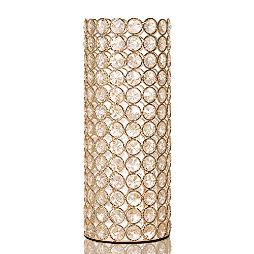 VINCIGANT Bougeoir Cristal Doré, Vase Design Décoratif Centre de Table Mariage- avec Doublure en Plastique pour Contenir d'eau,26.5 cm de Haut