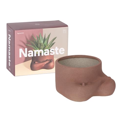 DOIY - Pot de Fleurs Moderne - Design en Forme d'esprit du Yoga - Fabriqué en Céramique - Pot pour Plantes - Vase Décoratif - Couleur Marron - 17,5x14,5x8,7cm