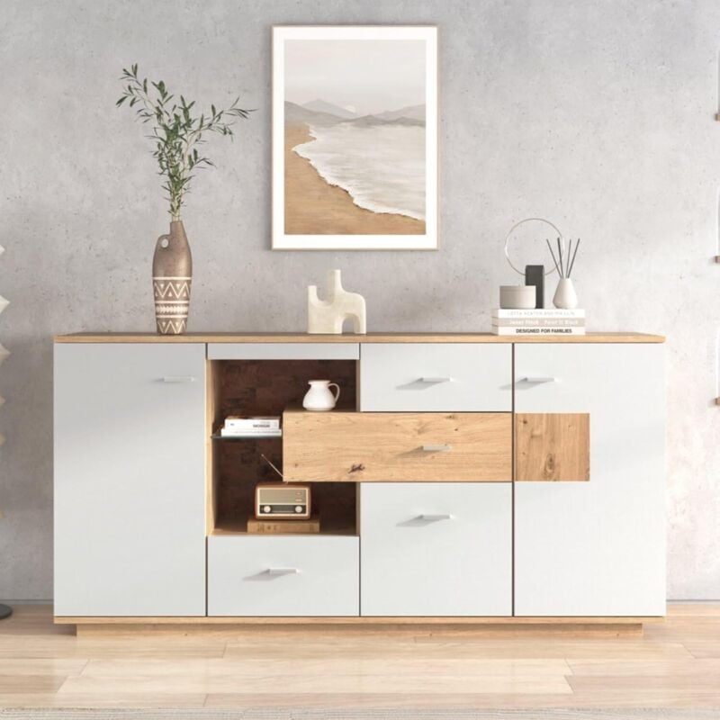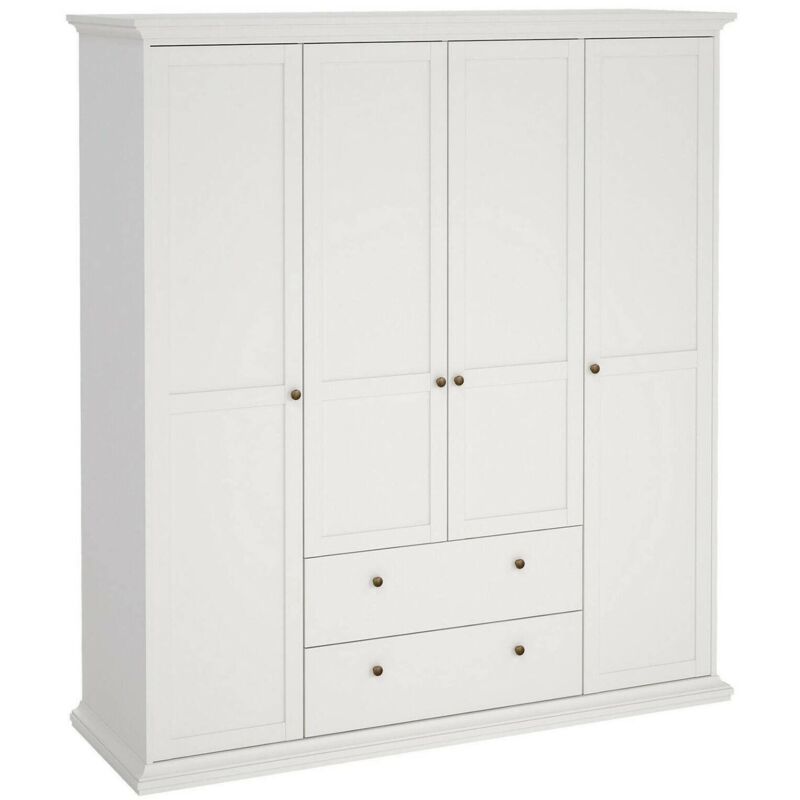Grande armoire de chambre design 6 portes battantes bois blanc laqué et métal argenté diamanto 270cm