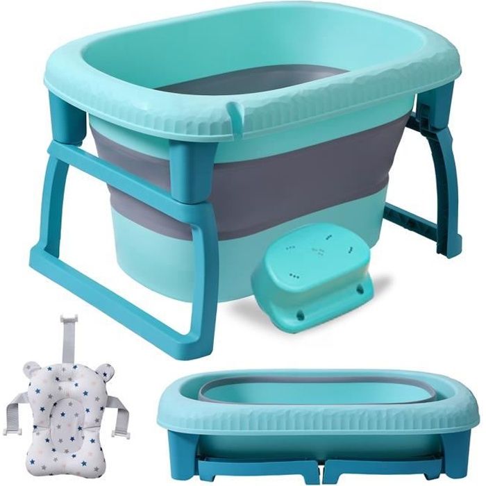 Grande baignoire pliable ultra compact kikido,baignoire en plastique enfant avec bouchon de vidange, pieds pliable, antidérapant et facile à ranger (vert) IKI-2-YT324-GREENBLUE
