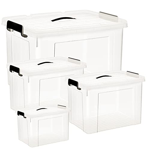 HOHAOO Boîte de rangement en plastique avec couvercle, 40 L x 2 + 25 L x 1 + 80 L x 1 grande boîte de rangement empilable transparente avec boucles de verrouillage pour la maison et le bureau