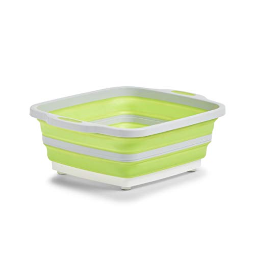 Zeller 26627 Bassine pliable 2 en 1 en plastique, gris clair/vert, env. 40 x 31,8 x 3,3/14,3 cm, planche à découper, pliable, bol d'évier de camping, panier de rangement, évier multifonction