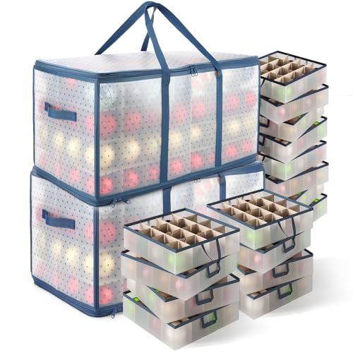 Hearth & Harbor Grande boîte de rangement pour décorations de Noël avec séparateurs réglables – Boîte de rangement en plastique pour 128 décorations ou décorations de vacances