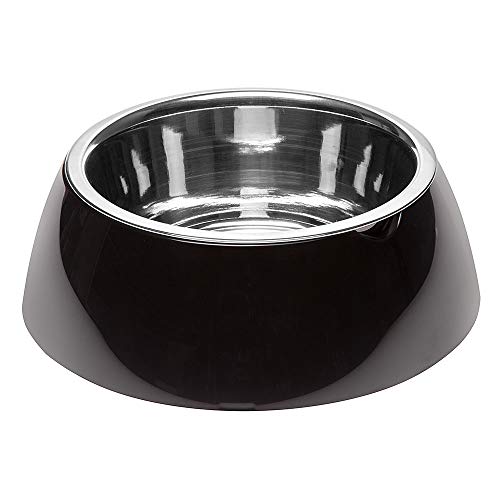 Ferplast Gamelle pour Chien Gamelle pour Chat Jolie - Gamelles pour Eau et Nourriture en Acier Inoxydable avec Support en Plastique, antidérapant, Grande (1,2 L), Noir