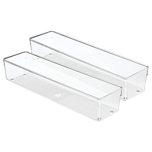 iDesign Linus Boite Stockage pour tiroir, Grande Boite de classement pour Accessoires, bac Rangement Plastique en Lot de 2, Transparent