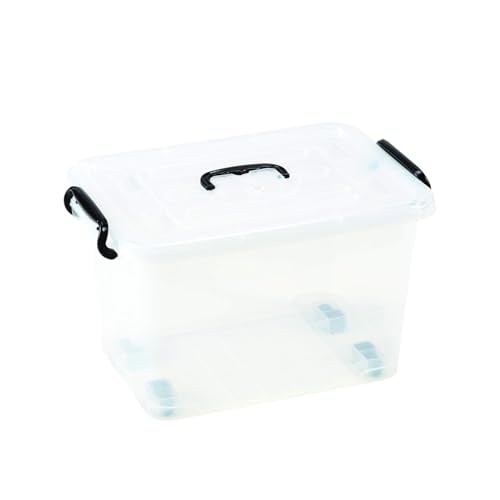 Wintem Boîte en plastique 65L avec couvercle et roues transparent - Grande boîte pour armoire et organisation