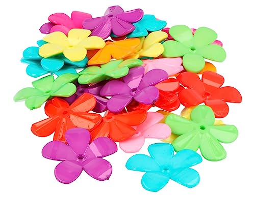 Perles en plastique en forme de grande fleur opaque multicolore 30 mm. 100u. Diamètre : env. 2 mm