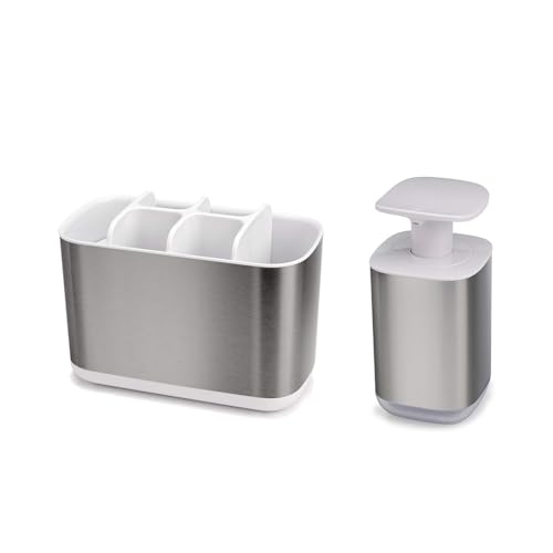 Wintem Lot de 5 Compartiments et distributeurs de Savon Liquindo 350 ML en Plastique et Acier Blanc et Argent - Pieds antidérapants Confortables pour Une Plus Grande stabilité - Trous pour Un séchage
