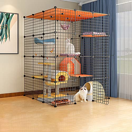 Grande Cage pour Chat avec Hamac pour Chat Parc pour Chat avec Bac à Litière Chenils en Fil Métallique Amovible pour Lapin, Lapin, Cochon D’Inde, Chinchilla, Deluxe, 2002-03-01 00:00:00