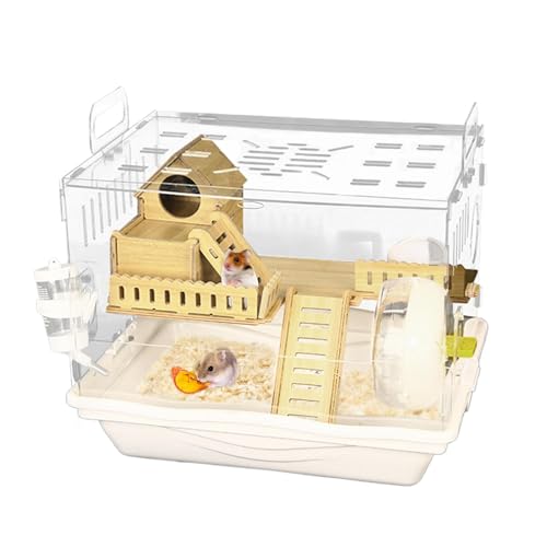 F Fityle Grande Cage à Hamster, Maison Transparente avec Bouteille d'eau, pour Hamster, Maison pour Animaux de Compagnie, Planeur de Sucre, Gerbilles, Beige, 34cmx25cmx18.5cm