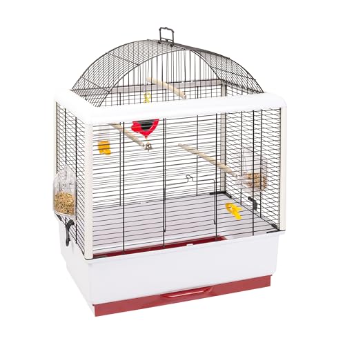 Ferplast Cage à Oiseaux Piano 4 Grande Cage pour Canaris, Pinsons, Perruches Ondulées, Inséparables, Accessoires Inclus, 59 x 33 x h 55 cm, Blanc