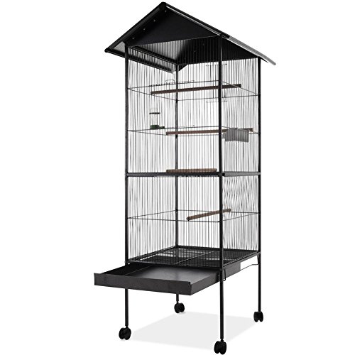 Yaheetech Grande Cage Oiseau Cage Perroquet Volière Oiseaux Intérieur Exterieur avec roulettes pour Cacatoès Perruche Canaris Perroquet Noir