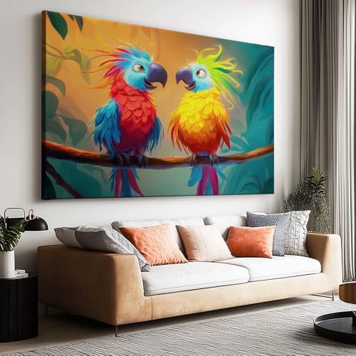 Cadre en Bois Animal Perroquet Tropical Impression sur Toile Moderne Mural 120 x 80 cm sur Toile Grande Tableau Decoration Murale Salon Chambre prêt à accrocher 1 pièce