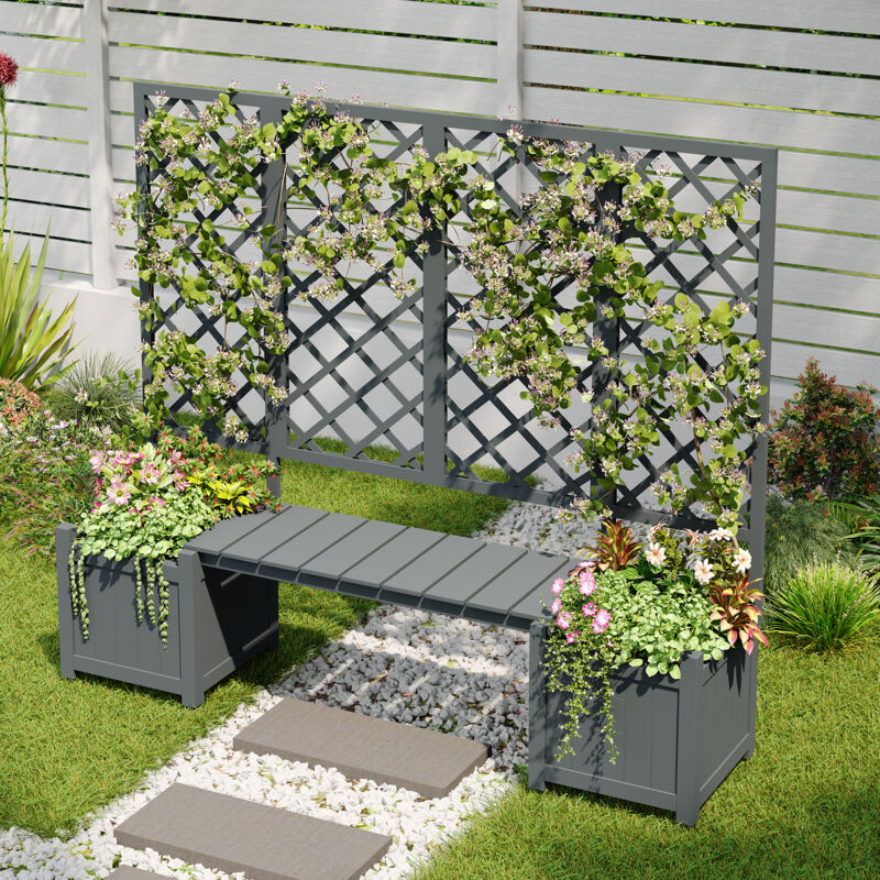Jardinière Avec Treilli et Assise, Grande Capacité, Bois Massif, Pour Jardin Terrasse Et Balcon 169×145×42 cm, Gris