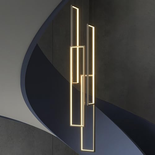 AJYBYUKJ Lustre LED Moderne – Suspension en Aluminium Noir pour Salon, escalier, Couloir et Duplex – Grande Lampe Suspendue au Design géométrique élégant pour Hall d'entrée et escaliers Beauty Comes