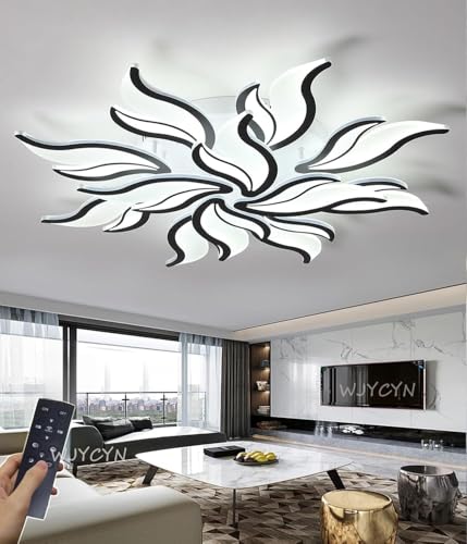Plafonnier LED à Intensité Variable Moderne Grande Lampe De Salon Fleur Créative Design Plafonnier De Chambre à Coucher avec Télécommande Éclairage De Plafond Lustre, Black, 12 Heads 90cm