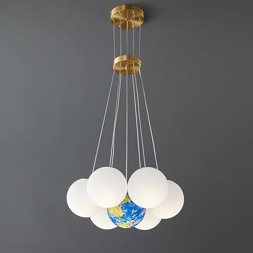 Lustre à bulles en verre dépoli pour table à manger Terre Lune Planète Boule blanche laitière Suspension Nordique Côtier Grande lampe suspendue pour salon, chambre à coucher, chambre d'enfant,