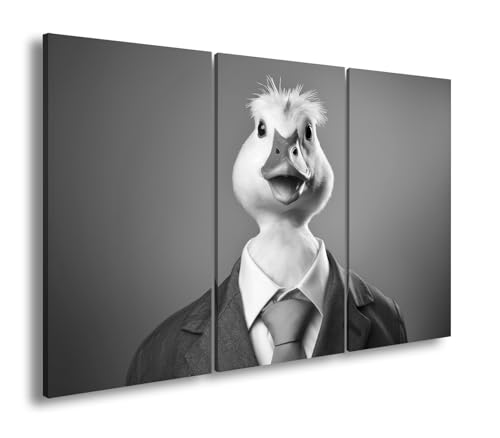 deyoli Impression sur toile Humour charmant, un canard en costume avec une grande personnalité Format : 120 x 80 cm (3 pièces) Effet : noir et blanc XXL Impression d'art sur châssis / Image murale
