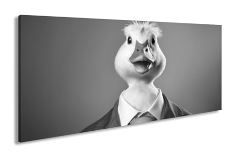 Impression sur toile Humour charmant, un canard en costume avec une grande personnalité Panorama 80 x 40 cm Effet : noir et blanc XXL Impression d'art sur châssis / Image murale / Décoration de salon
