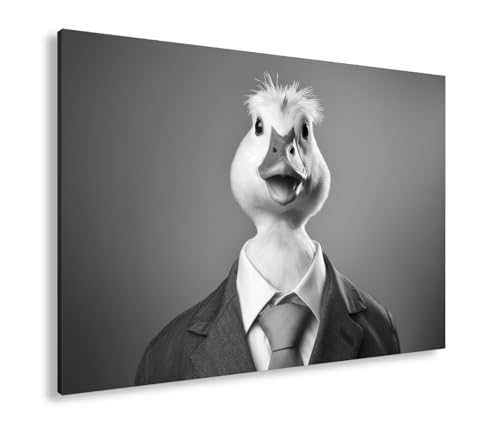 deyoli Impression sur toile Humour charmant, un canard en costume avec une grande personnalité Format : 70 x 50 cm Effet : noir et blanc XXL Impression d'art Image sur châssis / Image murale