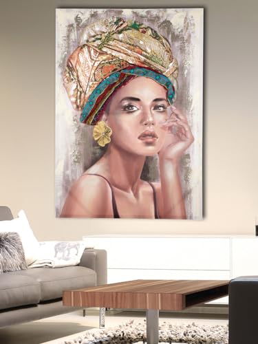 Gilde Grande image décorative XXL pour salon - Impression sur toile - Décoration murale rectangulaire - Motif femme sur mur - Aspect 3D - Multicolore - 80 x 120 cm