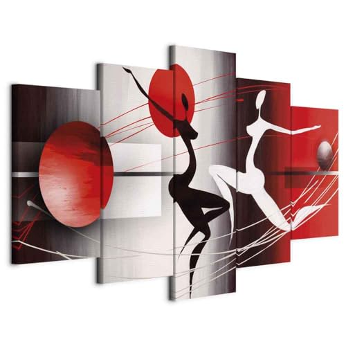 B&D XXL - Tableau Décoration 200x100 cm 5 Parties - Impression sur Toile Cadre en Bois Salon Chambre Déco Murale Tableaux Maison Bureau Cuisine - Abstrait Danse Blanc Noir Rouge 42359