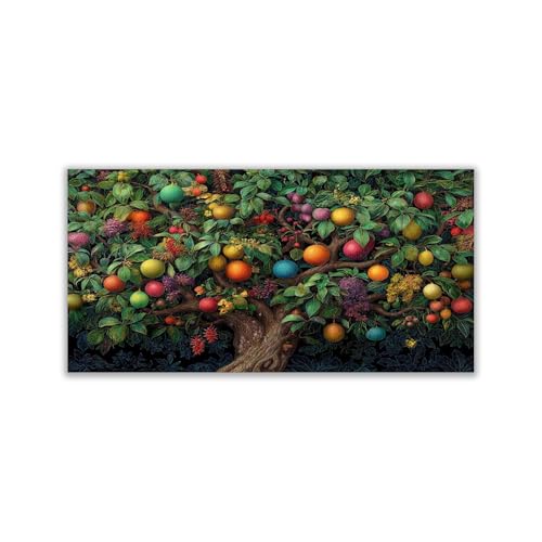 WIKEO Tableau moderne salon Fresque de l’Arbre de Vie Naturel arbre de la vie abstrait tableaux- modernes XXL grande impression sur toile décoration murale chambre salon(Orange)-50x100cm Encadrée