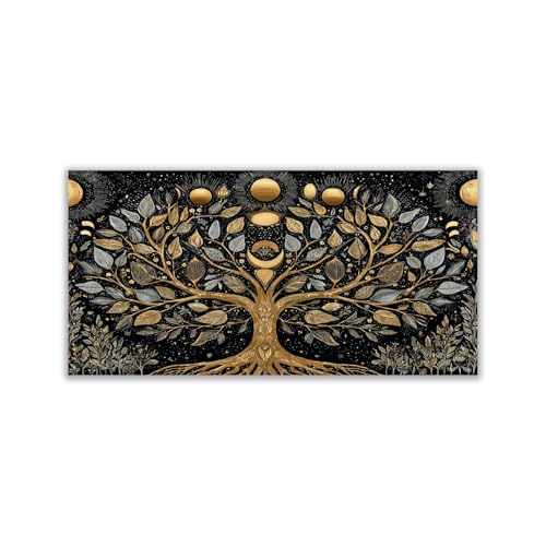 WIKEO Tableau moderne salon Œuvres d’art de l’Arbre d’Or de la Vie arbre de la vie abstrait tableaux- modernes XXL grande impression sur toile décoration murale chambre salon(Or)-50x100cm Encadrée