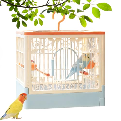 Grande Volière pour Oiseaux,Transport avec Perchoir,Cage pour Inséparables avec Plateau Amovible - pour Inséparables Conures Aras Calopsitte Transport Alimentation Fourrage Repos Intérieur et Jardin