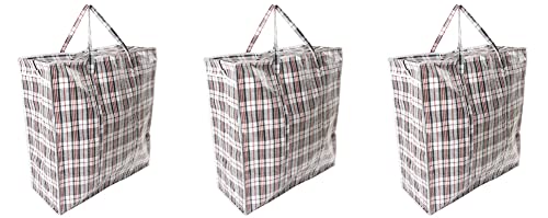 Lot de 3 grands sacs de rangement à carreaux (60 x 50 x 25 cm) solides et durables imperméables avec fermeture éclair, poignée de rangement en tissu attachée, sacs à bagages réutilisables