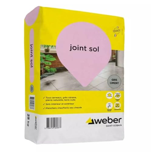 Weber - Joint pour sol intérieur/extérieur gris ciment 25 kg joints larges de carrelage (de 3 à 20 mm) adapté au jointoiement terres cuites, grès cérame moyens, grands formats, pierres naturelles