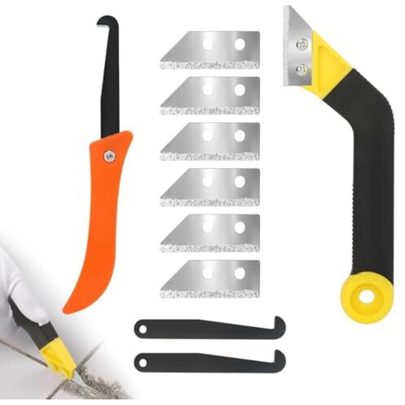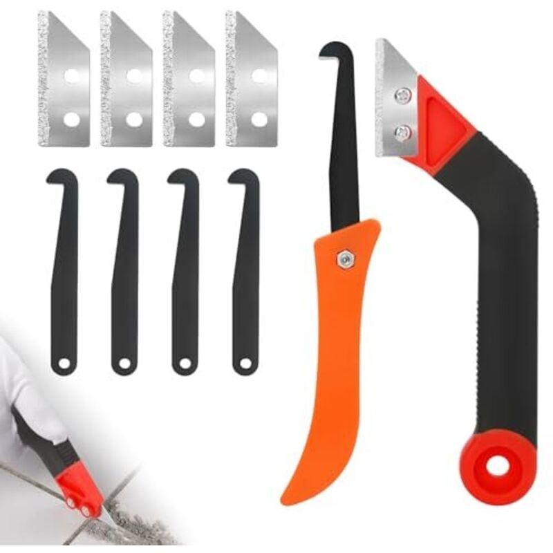 Outil de Retrait de Coulis, Outil de Retrait de Calfeutrage, Scie à Coulis et 8 Lames, Grattoir de Nettoyage de Joints de Carrelage, Nettoyeur de