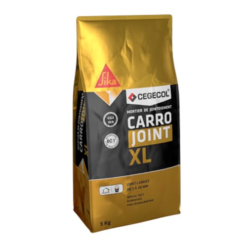 CEGECOL SIKA - Mortier de jointoiement carrelage - CARROJOINT XL Pierre - Joints 2 à 20 mm - Sol et mur intérieur et extérieur - Idéal Planchers Chauffants - Compatible CG2WA - 5Kg