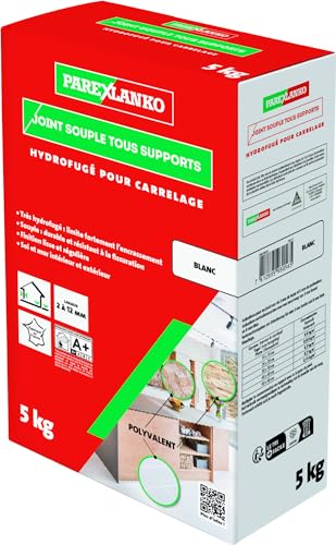 PAREXLANKO - Joint Souple tous Supports - Blanc - Joints de Carrelage de 2 à 12 mm Soumis à de Fortes Sollicitations - Neuf et Rénovation - Sol et Mur - Intérieur et Extérieur - 5 kg