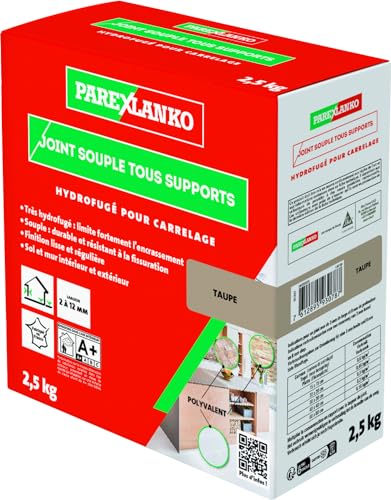 PAREXLANKO - Joint Souple tous Supports - Taupe - Joints de Carrelage de 2 à 15 mm Soumis à de Fortes Sollicitations - Neuf et Rénovation - Sol et Mur - Intérieur et Extérieur - 2,5 kg