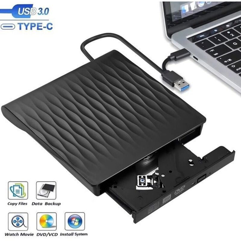 Lecteurs DVD/CD externes, USB 3.0 et Type C, graveur CD/DVD +/- RW portable, lecteur externe pour PC, ordinateur portable, MacBook, compatible avec