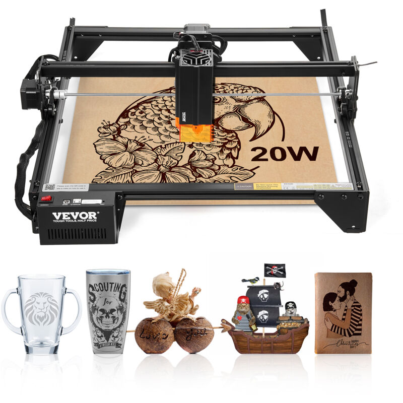 VEVOR Machine a Graver Laser 20 W Graveur Laser Zone de Travail 35x40 cm Vitesse de Deplacement 10000 mm/min Point Compresse, Protection Oculaire,