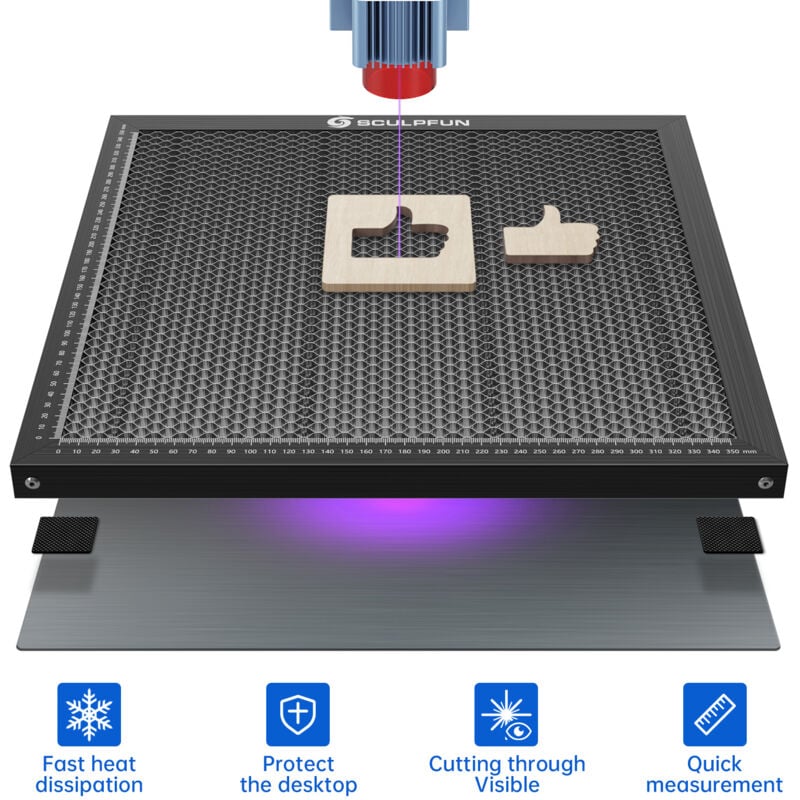 SCULPFUN 5W Graveur Laser, Machine de Gravure Laser à Effet 90W, Gravure et Découpe du Bois 15 mm, Protection des Yeux, 410 x 415 mm, pour Bois Métal Bleu