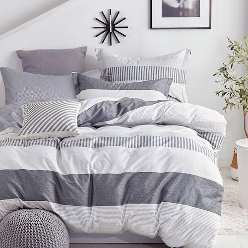 Parure housse de couette 100 % percale de coton 80 fils Grayscale gris 220 x 240 cm