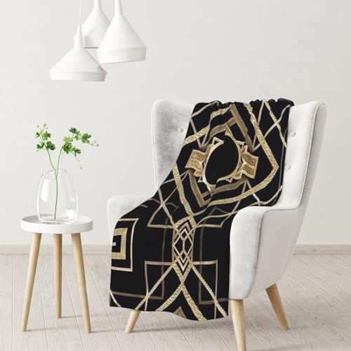 BeNtli Couverture, Couverture Chaude en Flanelle, jeté/Couverture de lit pour canapé Bureau 102x76 cm,Art Déco Vintage Era The Great Gatsby Gold Black Pattern