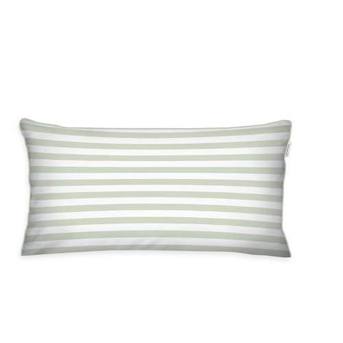 Tom Tailor Housse de Coussin en Percale, 40x80 cm, 100% Coton/Percale, Motif Réversible, Passepoil Coloré et Fermeture Eclair, Stripes with A Kick Vert Clair, Pêche (Green Leaf & Juicy Peach)