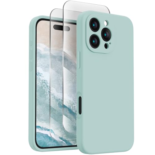 FireNova Designed for iPhone 16 Pro Case, Silicone Upgraded [Camera Protection] Phone Case with [2 Screen Protectors], Soft Anti-Scratch Microfiber Lining Inside, 2024, Mint Green