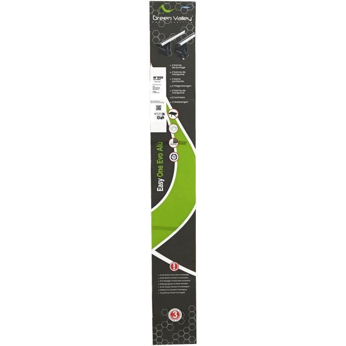 Lot de 2 Barres de toit - GREEN VALLEY - Easy One N° 55 - Aluminium - Fixation sur toit normal - Jusquà 75 kg