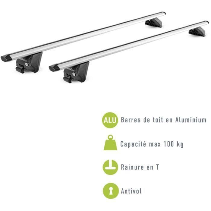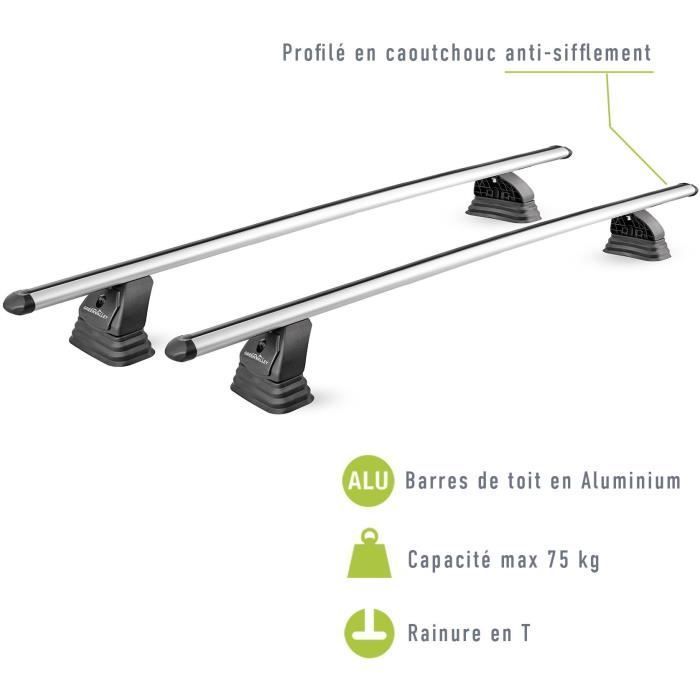 Lot de 2 Barres de toit - GREEN VALLEY - Easy One N° 01 - Aluminium - Fixation fix point - Jusquà 75 kg