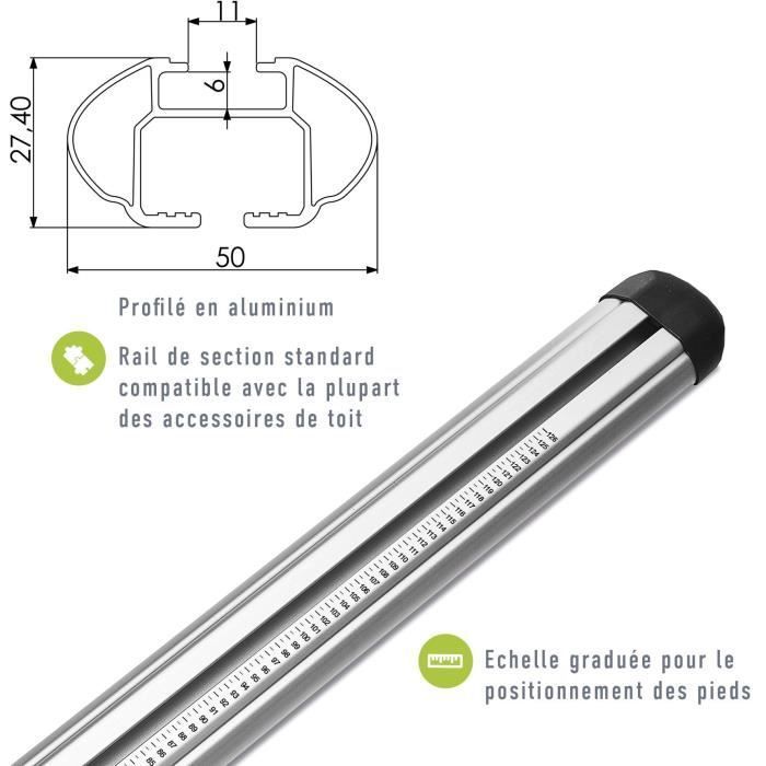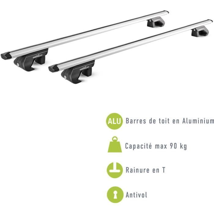 Barres de toit - GREEN VALLEY - TRAX 120cm - Aluminium - Railing ouvert - Charge max 90 kg